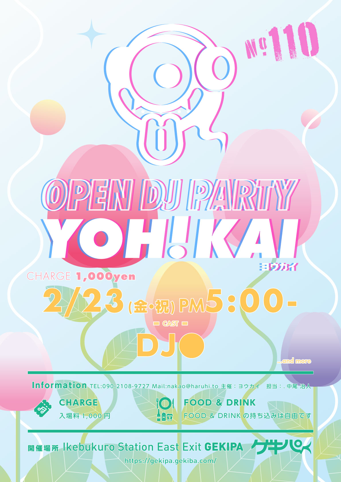 2月23日(金・祝)PM5:00時~ 池袋東口 Exciting Party Space ゲキパにてオープンDJパーティヨウカイ110を開催いたします