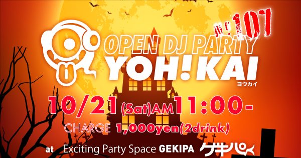 10月21日(土)AM11時~ 池袋東口 Exciting Party Space ゲキパにてオープンDJパーティヨウカイ107を開催いたします