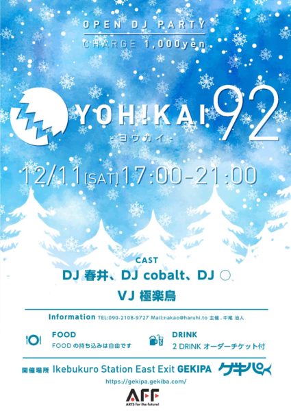 12月11日(土)17時~ 池袋東口 Exciting Party Space ゲキパにてオープンDJパーティヨウカイ92を開催いたします