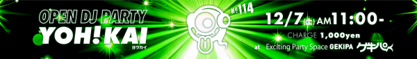 12月7日(土)AM11:00~ 池袋東口 Exciting Party Space ゲキパにてオープンDJパーティヨウカイ114を開催いたします
