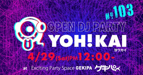 4月29日(土・祝)PM12時~ 池袋東口 Exciting Party Space ゲキパにてオープンDJパーティヨウカイ103を開催いたします