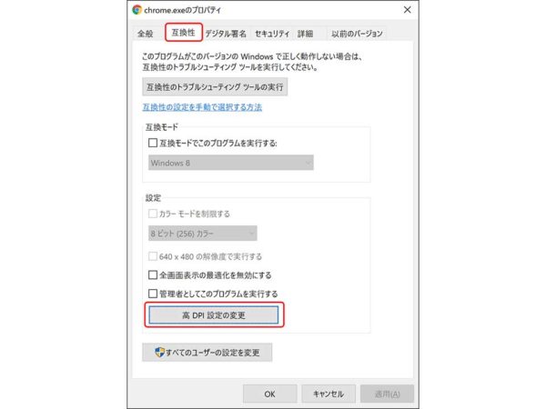 4Kモニタのスケーリング200%でGoogleクロムの保存などwindowsダイアログが低DPIで表示される場合の対応設定