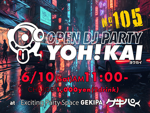 7月29日(土)AM11時~ 池袋東口 Exciting Party Space ゲキパにてオープンDJパーティヨウカイ105を開催いたします