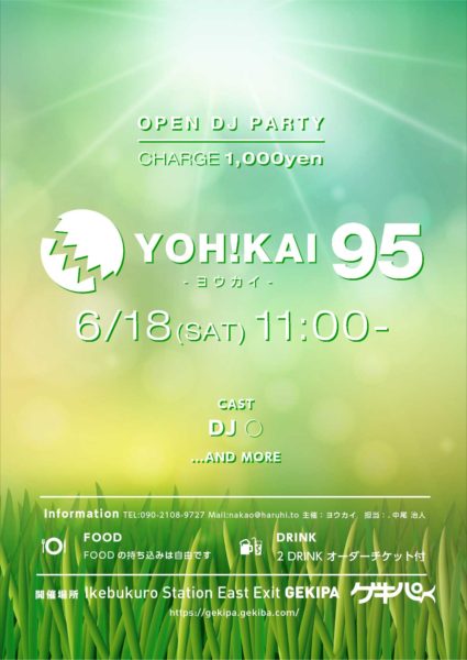 6月18日(土)11時~ 池袋東口 Exciting Party Space ゲキパにてオープンDJパーティヨウカイ95を開催いたします
