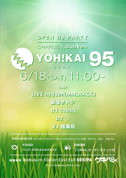 6月18日(土)11時~ 池袋東口 Exciting Party Space ゲキパにてオープンDJパーティヨウカイ95を開催いたします