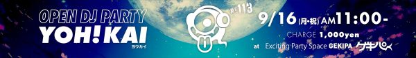 9月16日(月・祝)AM11:00~ 池袋東口 Exciting Party Space ゲキパにてオープンDJパーティヨウカイ113を開催いたします