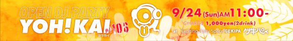 9月24日(日)AM11時~ 池袋東口 Exciting Party Space ゲキパにてオープンDJパーティヨウカイ106を開催いたします